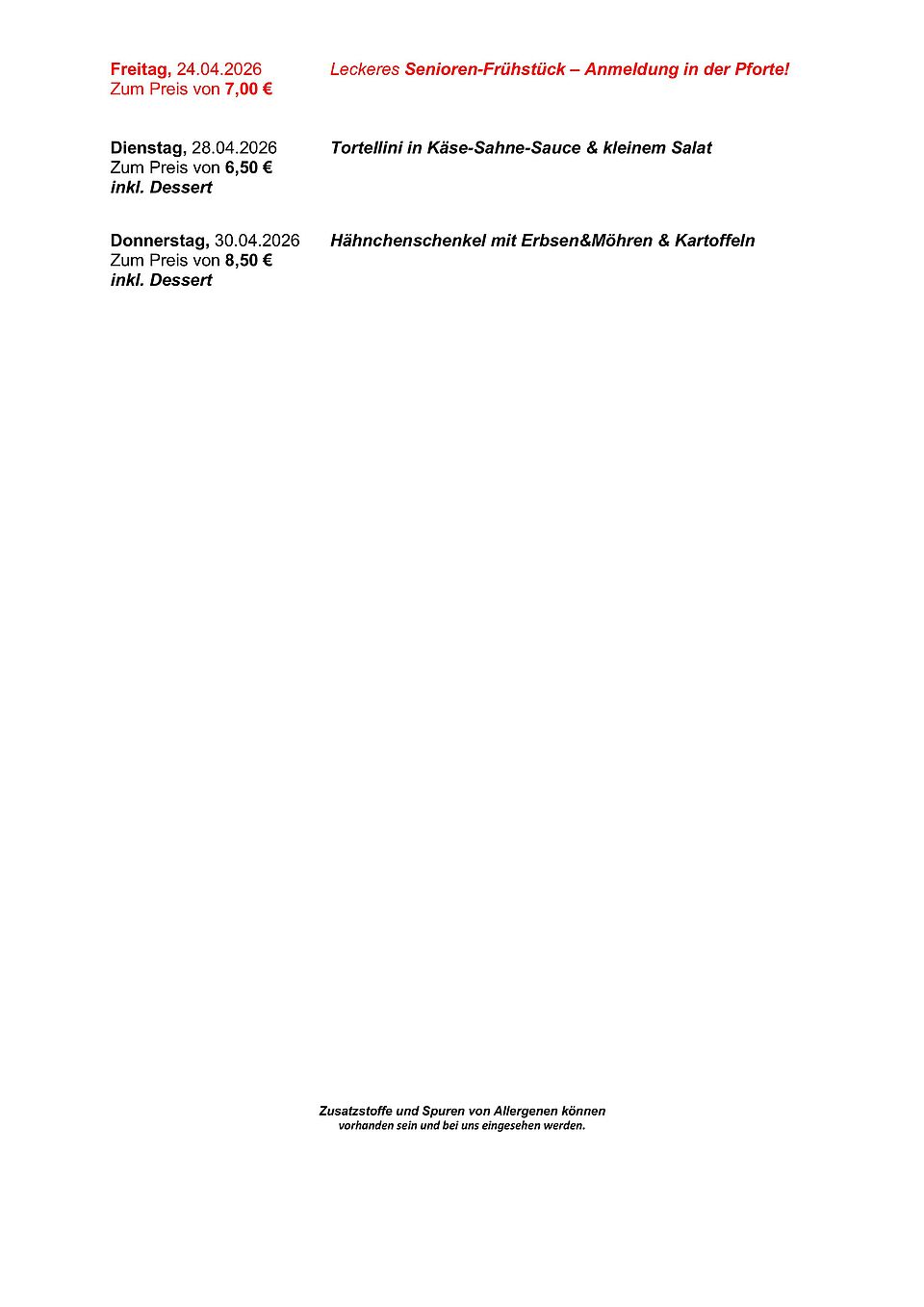 Unsere Mittagstische finden in der Luisenhüttenstraße 25 jeden Dienstag, Donnerstag und Freitag um 12.00 Uhr statt.