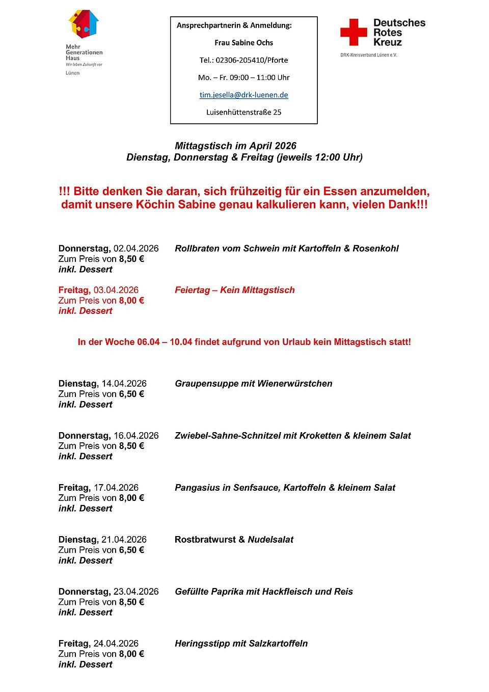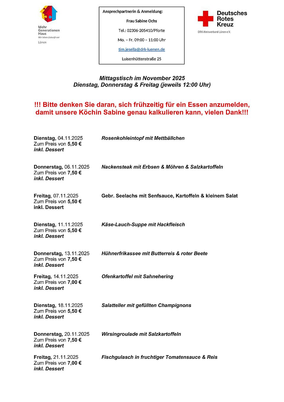 Damit das gelingt und niemand alleine Essen muss, organisiert das Team des Mehrgenerationenhauses Lünen um Küchenfee Sabine, dienstags, donnerstags und freitags, vielfältige Mittagstische. Während sich der Mittagstisch am Dienstag an Personen richtet, die gerne in den Genuss von Eintöpfen kommen, bietet der Mittagstisch am Donnerstag verschiedenste Gerichte an. Freitags ist Fischtag. Entscheiden Sie selbst, welche Form von Mittagstisch zu Ihnen passt, oder schauen Sie doch am besten gleich bei beiden Angeboten rein!