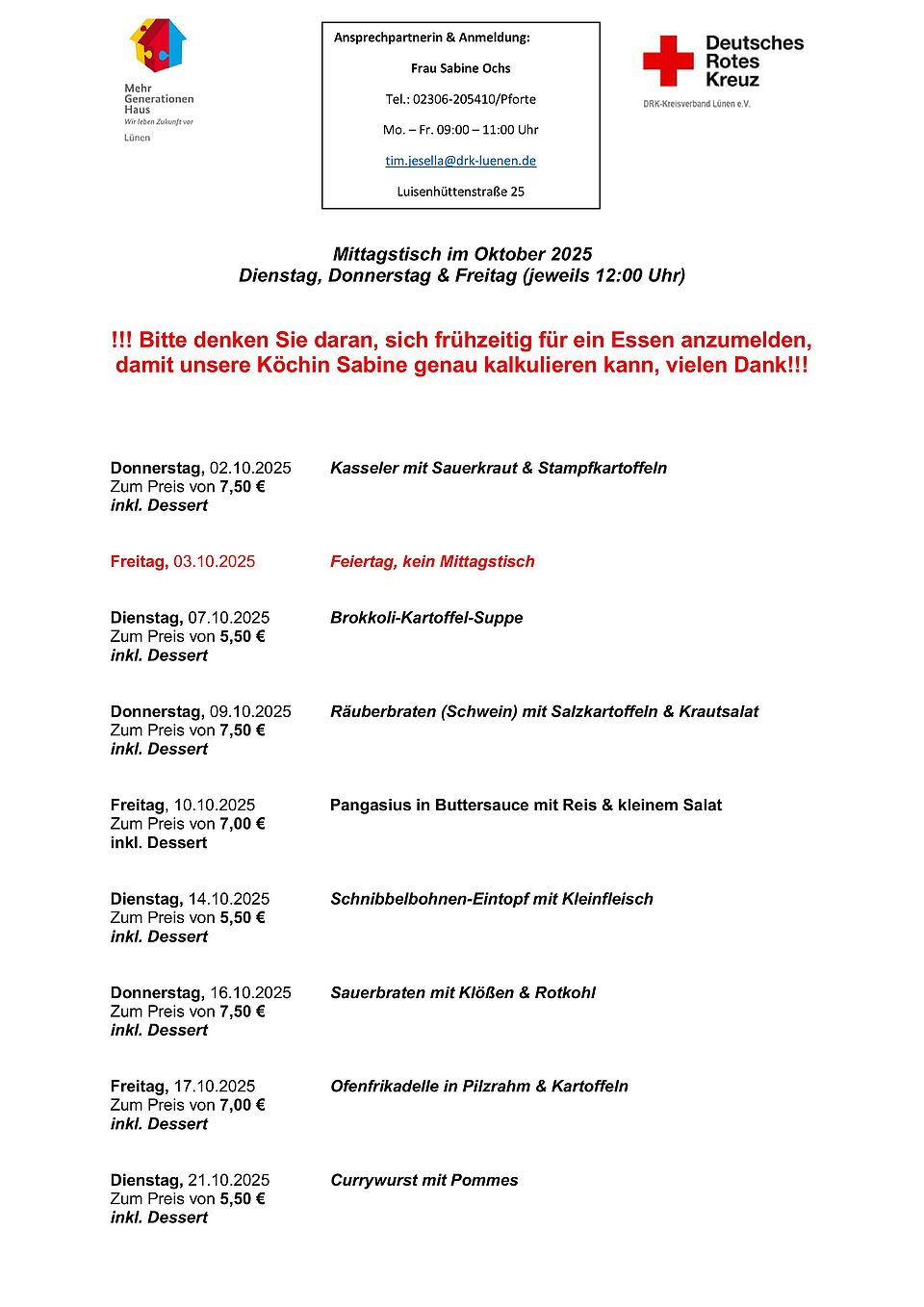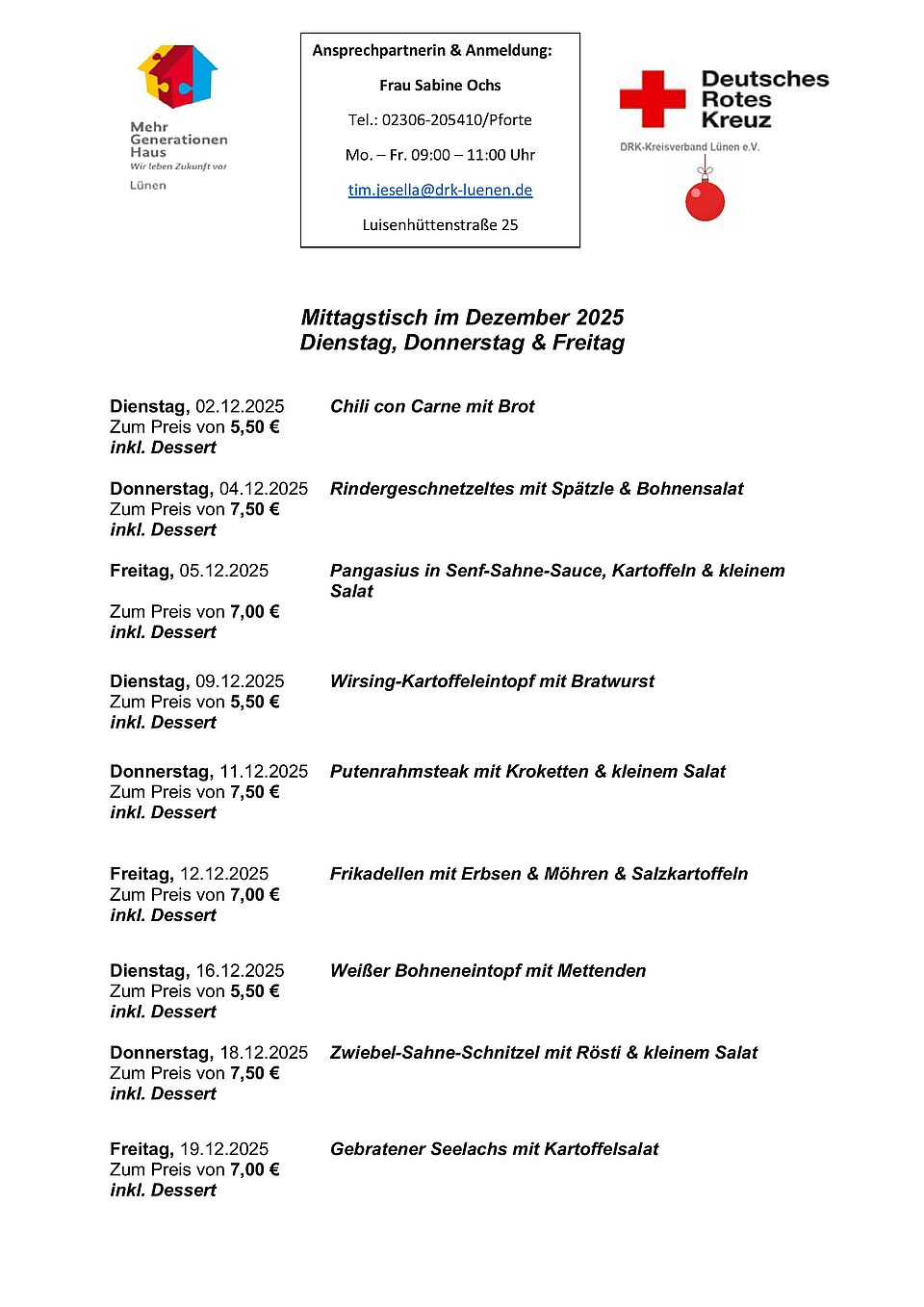 Damit das gelingt und niemand alleine Essen muss, organisiert das Team des Mehrgenerationenhauses Lünen um Küchenfee Sabine, dienstags, donnerstags und freitags, vielfältige Mittagstische. Während sich der Mittagstisch am Dienstag an Personen richtet, die gerne in den Genuss von Eintöpfen kommen, bietet der Mittagstisch am Donnerstag verschiedenste Gerichte an. Freitags ist Fischtag. Entscheiden Sie selbst, welche Form von Mittagstisch zu Ihnen passt, oder schauen Sie doch am besten gleich bei beiden Angeboten rein!